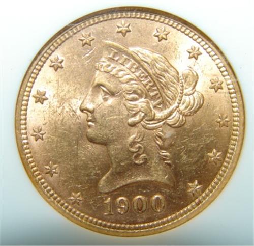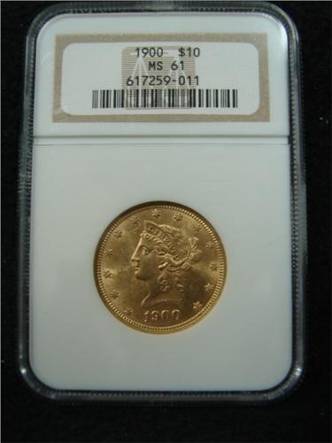 1900 $10 LIBERTY GOLD COIN. Graded by NGC. MS 61.