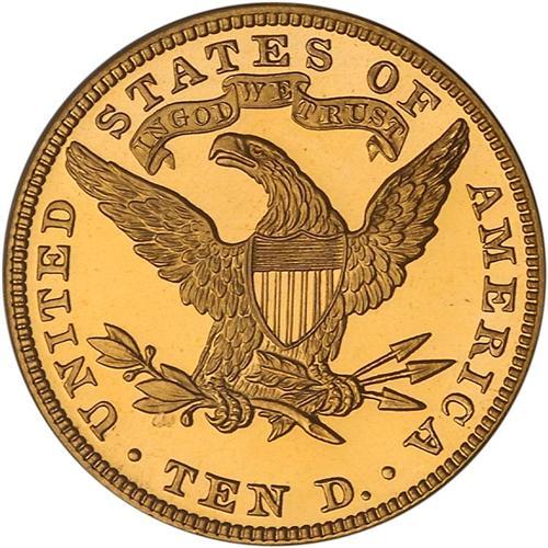 Mintage for this date is 120 proof coins. A fully struck, pristine superb gem, proof Eagle, virtually flawless. One of only two in this grade, and none certified finer. Probably finest known. Estimated at $50,000 to $75,000.