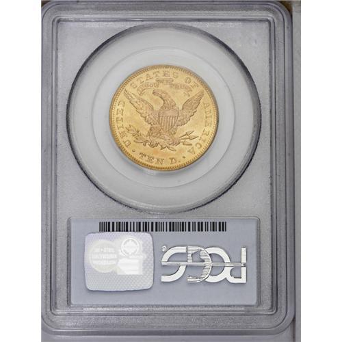 <B>1900<$10> MS63 PCGS.</B></I> The luster flow is nearly uninterrupted on this attractive peach and yellow-gold eagle. The design elements are sharply impressed throughout. Small abrasions on the cheek and neck, and a few scuffs in the fields, limit the grade. <BR><BR><B>Important notice:</B> Heritage usually auctions material at the rate of 200-250 lots per hour. On some occasions eBay Live bid software or the Internet may not be able to keep up with the pace of the auction. We recommend placing a realistic absentee bid now as insurance to avoid disappointment. Occasionally the auctioneer may eliminate or reject an eBay Live bid, and the auctioneer may also reopen a lot after the close of the eBay live bidding (usually because we missed an audience bid), and may reject your bid even if it shows you as the winning bidder. By bidding via eBay Live, you agree that Heritage may award the lot to another bidder at its sole discretion under the circumstances described above or any other reasonable circumstances. Since eBay bids are not shown to us until we open the lot on the floor, we treat those bids just like floor bids. In most cases the floor responds before the eBay bid is presented to us, due to Internet lag time, so for consistency we have made it a policy that floor bids are always considered first over tie eBay live bids. Also please note that all Heritage lots purchased through eBay Live carry a 20% Buyer's Premium. Please make sure you read the Terms and Conditions before you bid. This lot is being auctioned in conjunction with a live floor auction by Heritage Galleries & Auctioneers. All final auction and invoice information will be supplied by Heritage Galleries & Auctioneers, and all other information should be considered preliminary. Lot:4061 <BR><BR><B>Winning Notification and Billing:</B> After the FINAL session in this auction is complete, Heritage will send e-mail and snail mail invoices. This process normally takes several days. All final auction and invoice information will be supplied by Heritage Galleries & Auctioneers, and all other information should be considered preliminary. <BR><BR>This auction will be conducted on a live auction floor and over the Internet through eBay Live. If you choose to place an absentee bid, please take a moment to <font color='#0000ff'><u><a href='http://pages.ebay.com/liveauctions/help/before/laabsentee.html'>learn how eBay Live absentee bidding works</a></u></font><font color='#000000'>