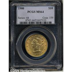 <B>1900<$10> MS64 PCGS.</B></I> While not a rare date, this issue is seldom encountered in higher grades. In fact, PCGS has only certified five examples finer than this. Very sharply struck with only a few light surface marks keeping this from the Gem category. <BR><BR><B>Important notice:</B> Heritage usually auctions material at the rate of 200-250 lots per hour. On some occasions eBay Live bid software or the Internet may not be able to keep up with the pace of the auction. We recommend placing a realistic absentee bid now as insurance to avoid disappointment. Occasionally the auctioneer may eliminate or reject an eBay Live bid, and the auctioneer may also reopen a lot after the close of the eBay live bidding (usually because we missed an audience bid), and may reject your bid even if it shows you as the winning bidder. By bidding via eBay Live, you agree that Heritage may award the lot to another bidder at its sole discretion under the circumstances described above or any other reasonable circumstances. Since eBay bids are not shown to us until we open the lot on the floor, we treat those bids just like floor bids. In most cases the floor responds before the eBay bid is presented to us, due to Internet lag time, so for consistency we have made it a policy that floor bids are always considered first over tie eBay live bids. Also please note that all Heritage lots purchased through eBay Live carry a 20% Buyer's Premium. Please make sure you read the Terms and Conditions before you bid. </span></font></tr></table></td></tr></table>