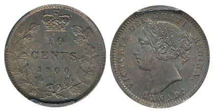 1900 10¢ PCGS MS65. Deep green and blue tones over full underlying lustre.