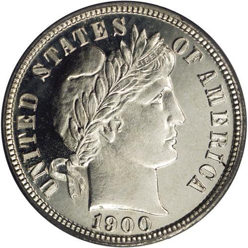 <B>1900<10C> PR66 Deep Cameo PCGS.</B></I> A sharply struck and fully brilliant proof with amazing eye appeal. Both sides are brilliant with silvery-white color, although the reverse has a hint of champagne color. The fields are deeply reflective and the devices are highly lustrous. Population: 1 in 66, 0 finer (4/06).