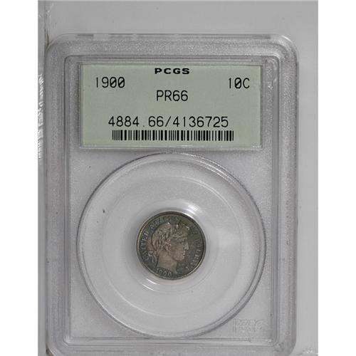 <B>1900<10C> PR66 PCGS.</B></I> Concentric bands of violet and red surround an orange-yellow center. Great detail with deep mirrors for this issue. Population: 21 in 66, 10 finer (6/06).