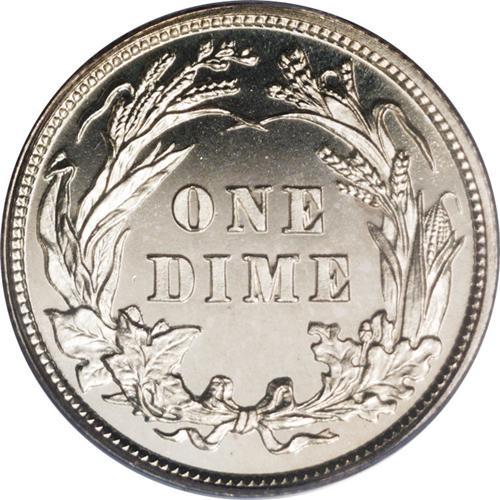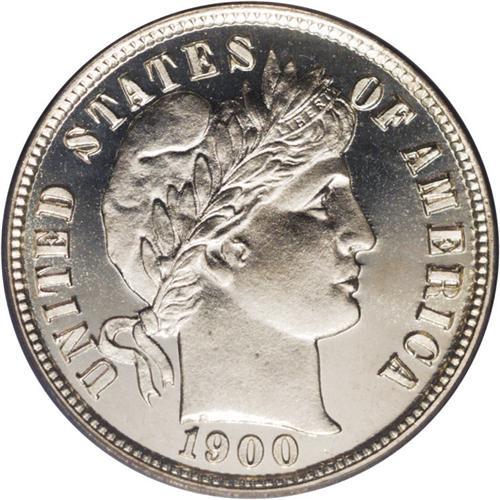 <B>1900<10C> PR68 Cameo PCGS.</B></I> An essentially untoned Superb Gem proof Barber dime with a pronounced black and white contrast between the frosty devices and the watery fields. Just a hint of hazy golden color is seen on the reverse as the coin turns under a light source. Even close examination with a loupe fails to reveal any mentionable marks or other identifiers. Only 912 proofs were originally struck, and very few examples can claim this elevated numerical grade. A flashy coin that would be an impressive addition to a proof type set. Population: 2 in 68 Cameo, none are finer at either service (4/06).