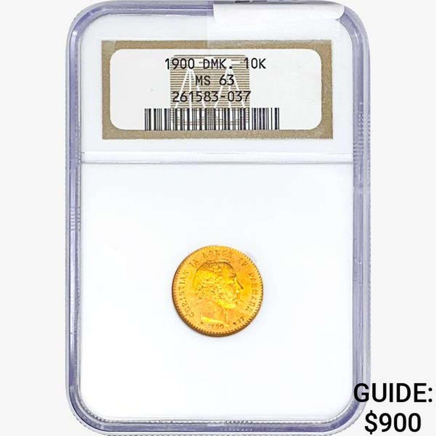1900 .1296oz. Gold Denmark 10 Kroner NGC MS63