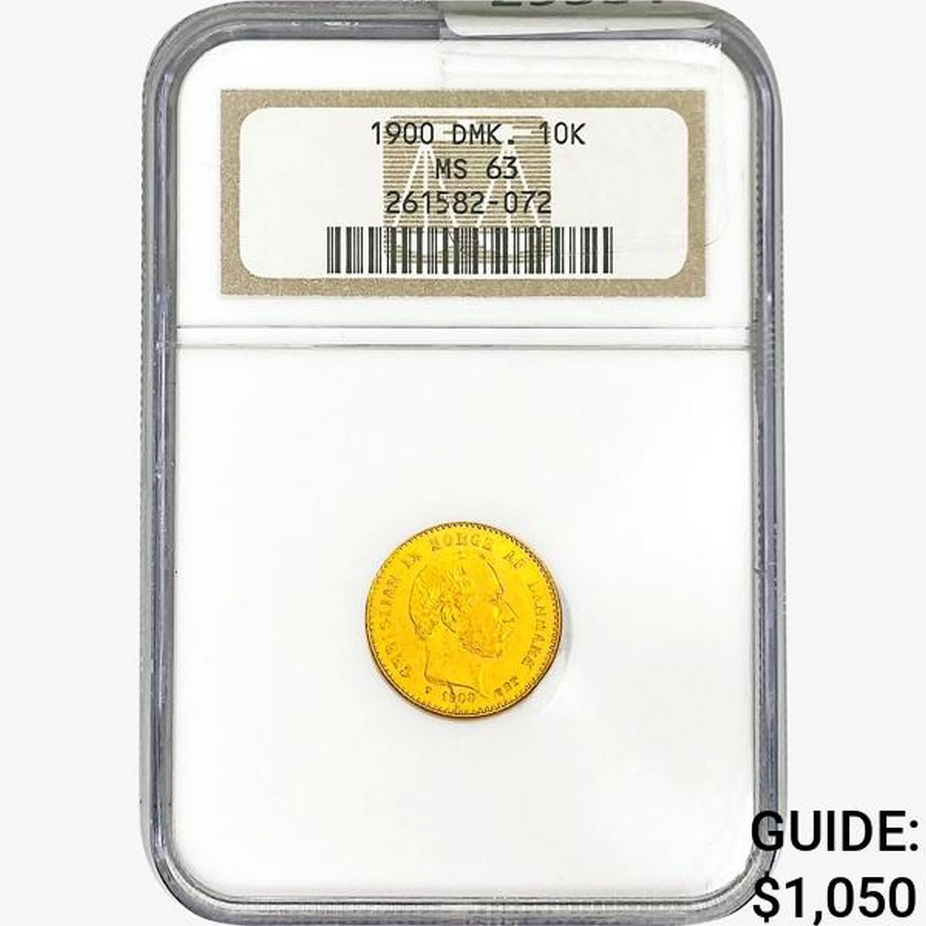 1900 .1296oz. Gold Denmark 10 Kroner NGC MS63