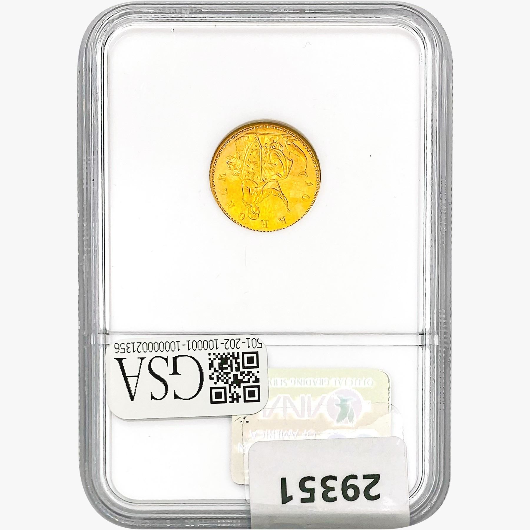 l. All non-certified coins and currency are guaranteed genuine, but are not guaranteed as to grade, since grading is a matter of opinion, an art and not a science, and therefore the description rendered by GSA or any third-party grading service may not agree with the opinion of others (including trained experts), and the same expert may not grade the same item with the same grade at two different times. GSA may, but is not obligated to, express an opinion as to non-certified numismatic items, in GSA’s opinion, or by its employees’ experience and the current interpretation of the American Numismatic Association’s standards as of the date the catalog was prepared. There is no guarantee or warranty expressed or implied that the grading opinions utilized by GSA, if any, will meet the standards of any grading service at any time in the future.