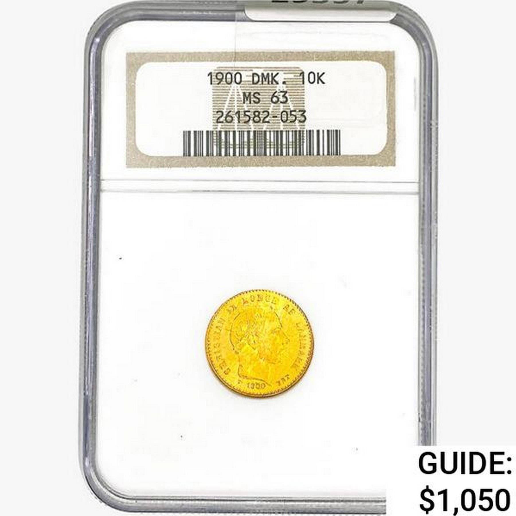 1900 .1296oz. Gold Denmark 10 Kroner NGC MS63