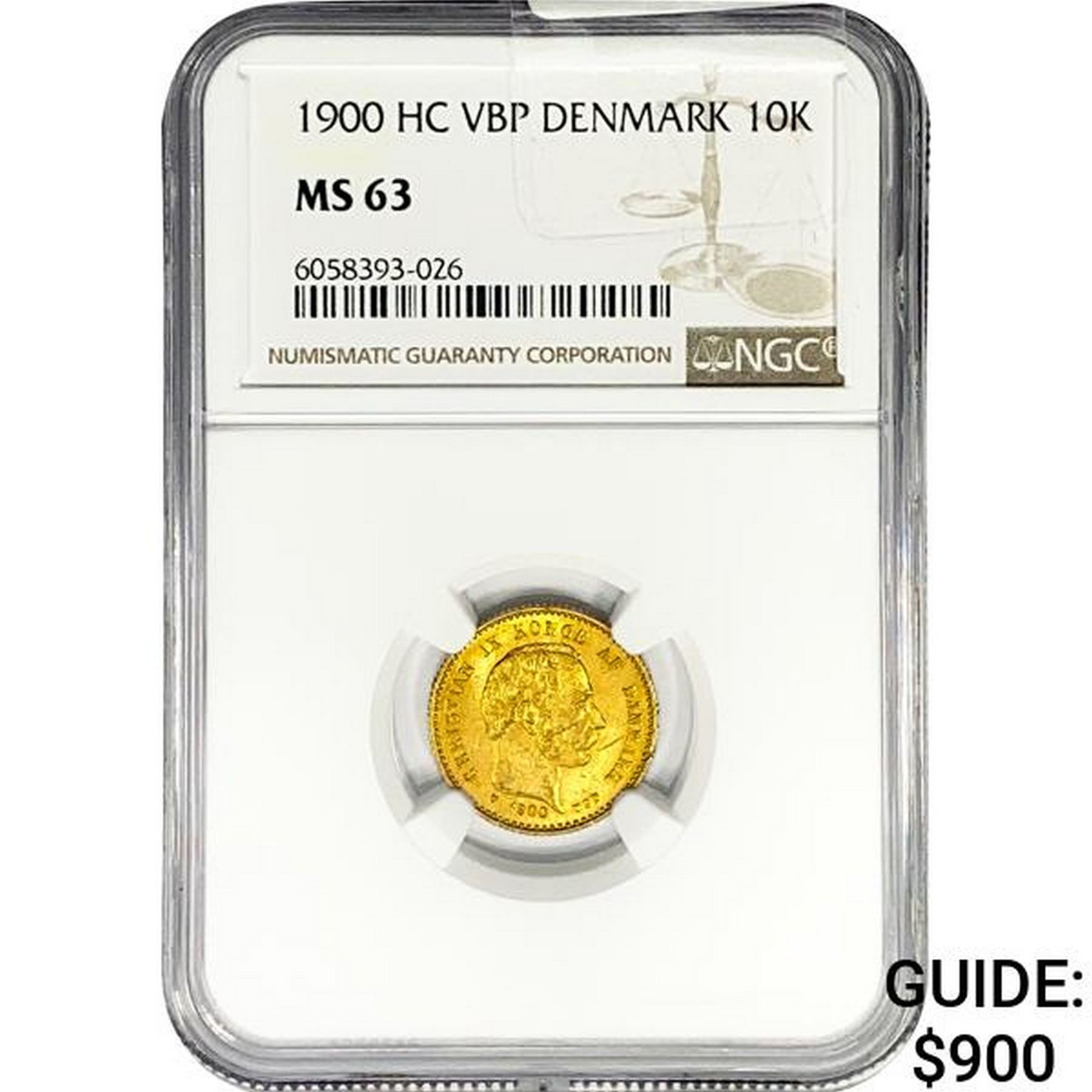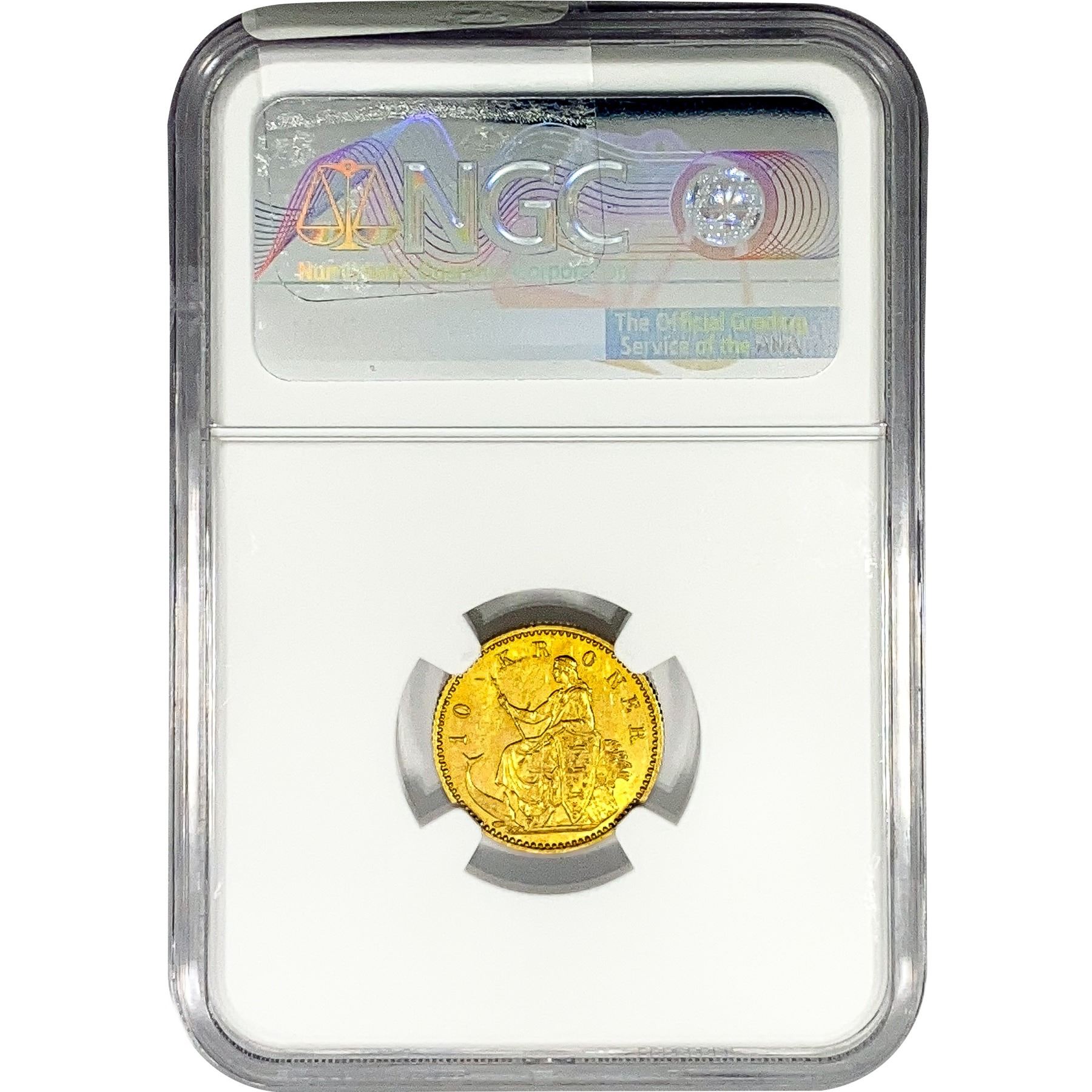 1900 .1296oz. Gold HC VBP Denmark 10 Kroner NGC MS