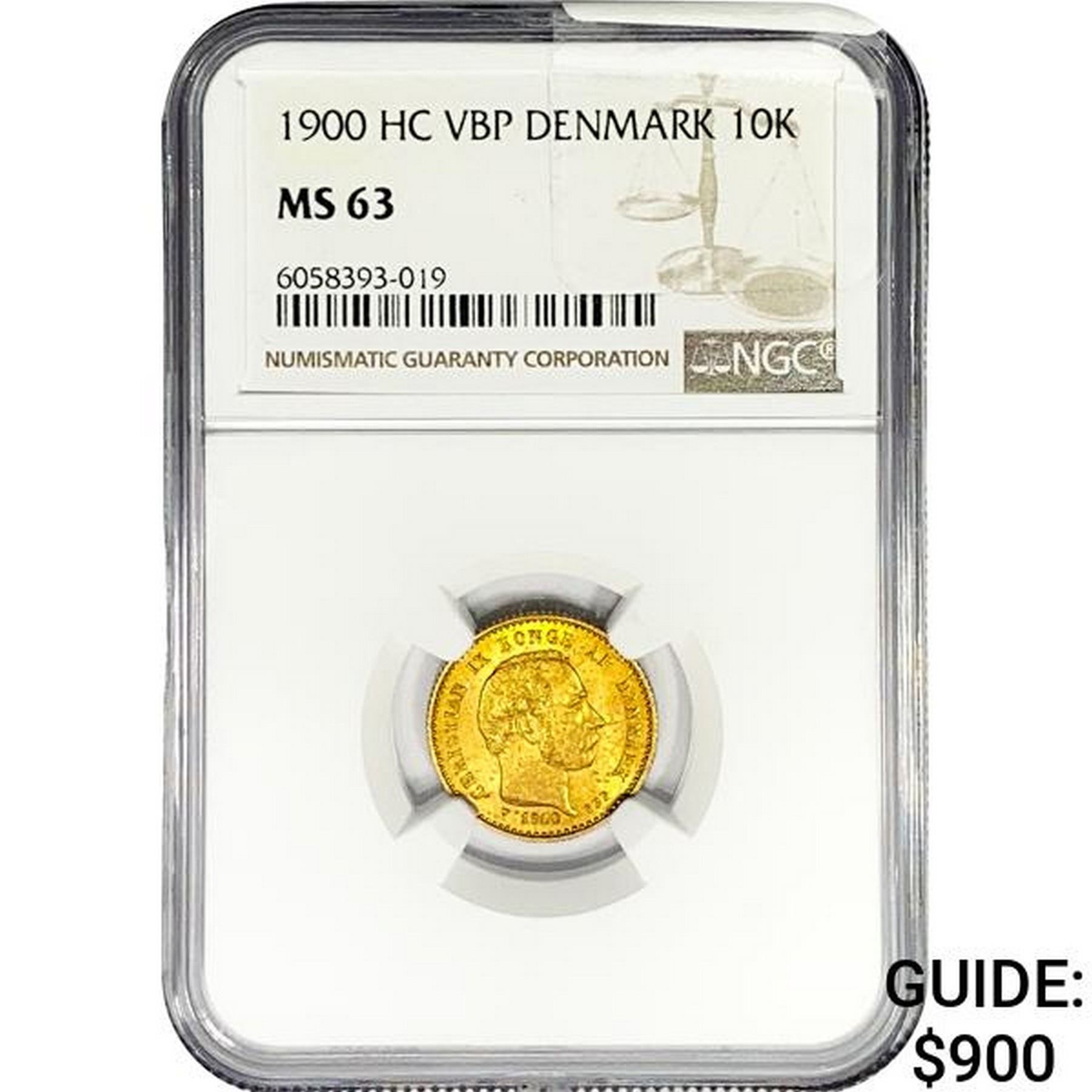 1900 .1296oz. Gold HC VBP Denmark 10 Kroner NGC MS