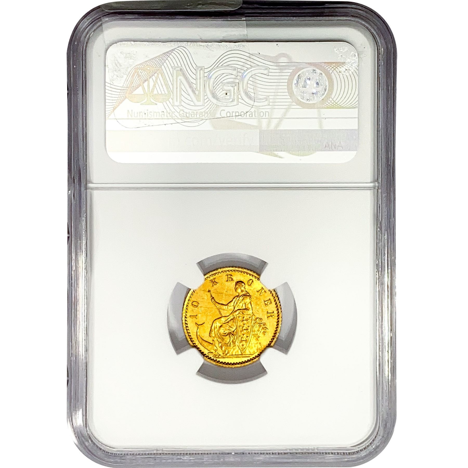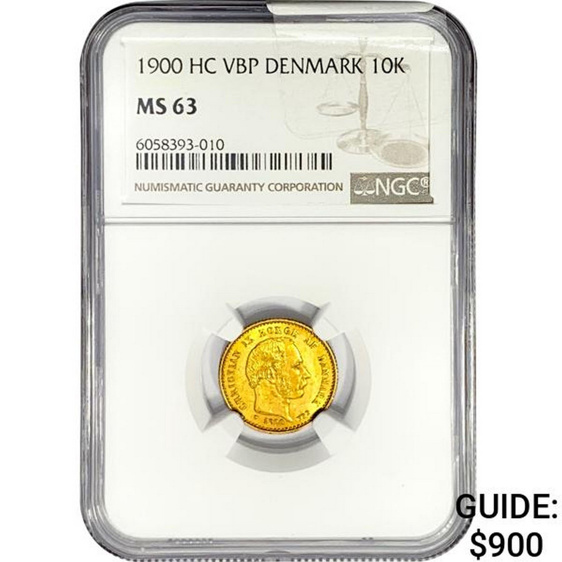 1900 .1296oz. Gold HC VBP Denmark 10 Kroner NGC MS
