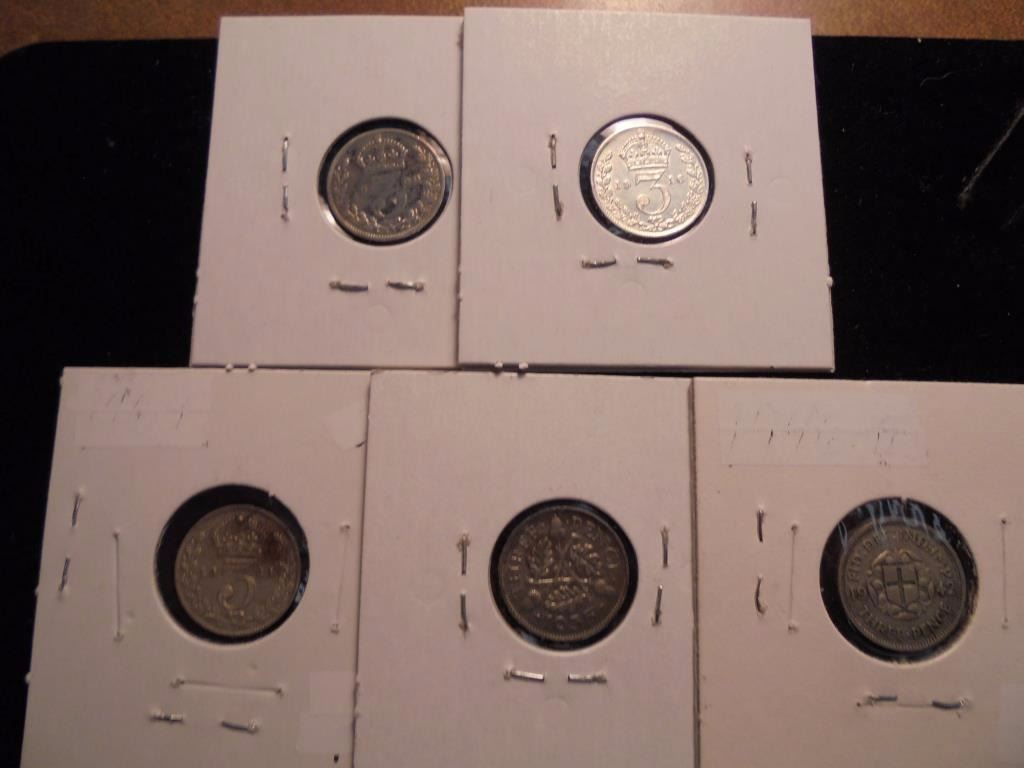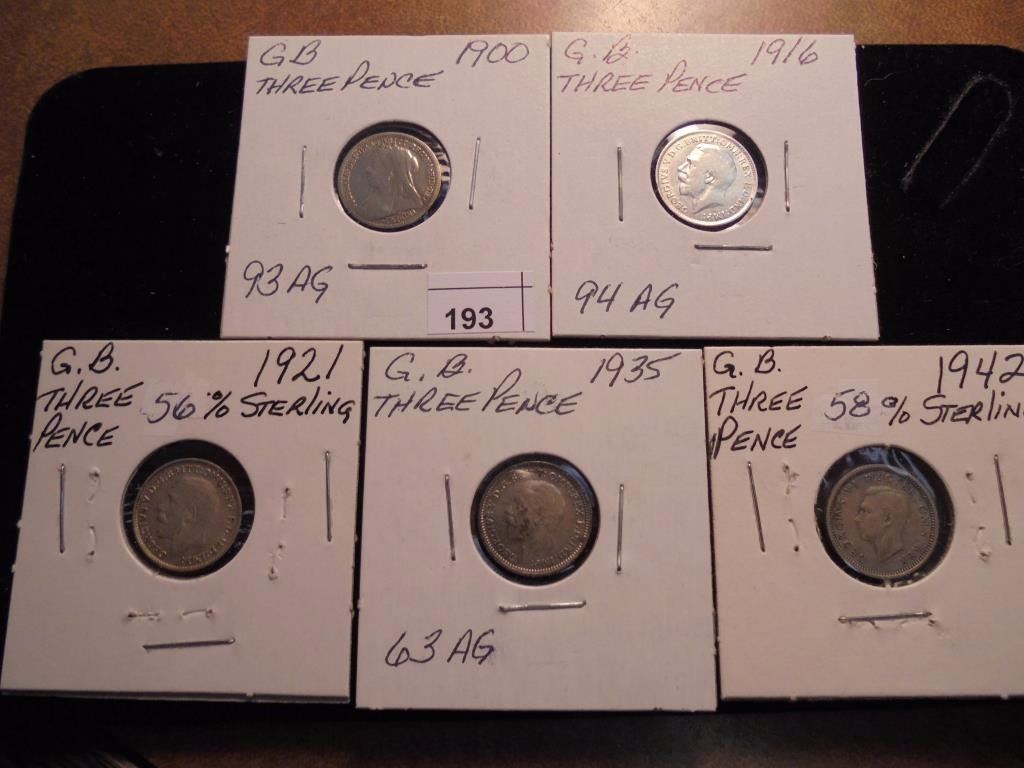 1900,16,21,35 & 42 GREAT BRITAIN SILVER 3 PENCE