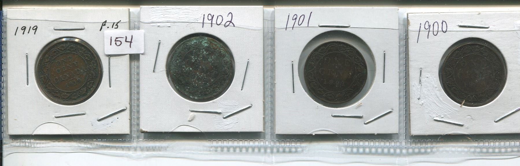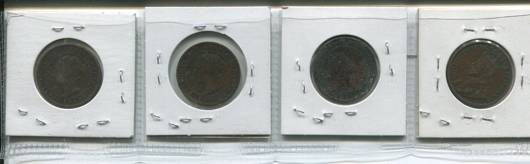 1900,1901,1902,1919,4-Large Canadian pennies,Queen Victoria, King Edward VII, King George V