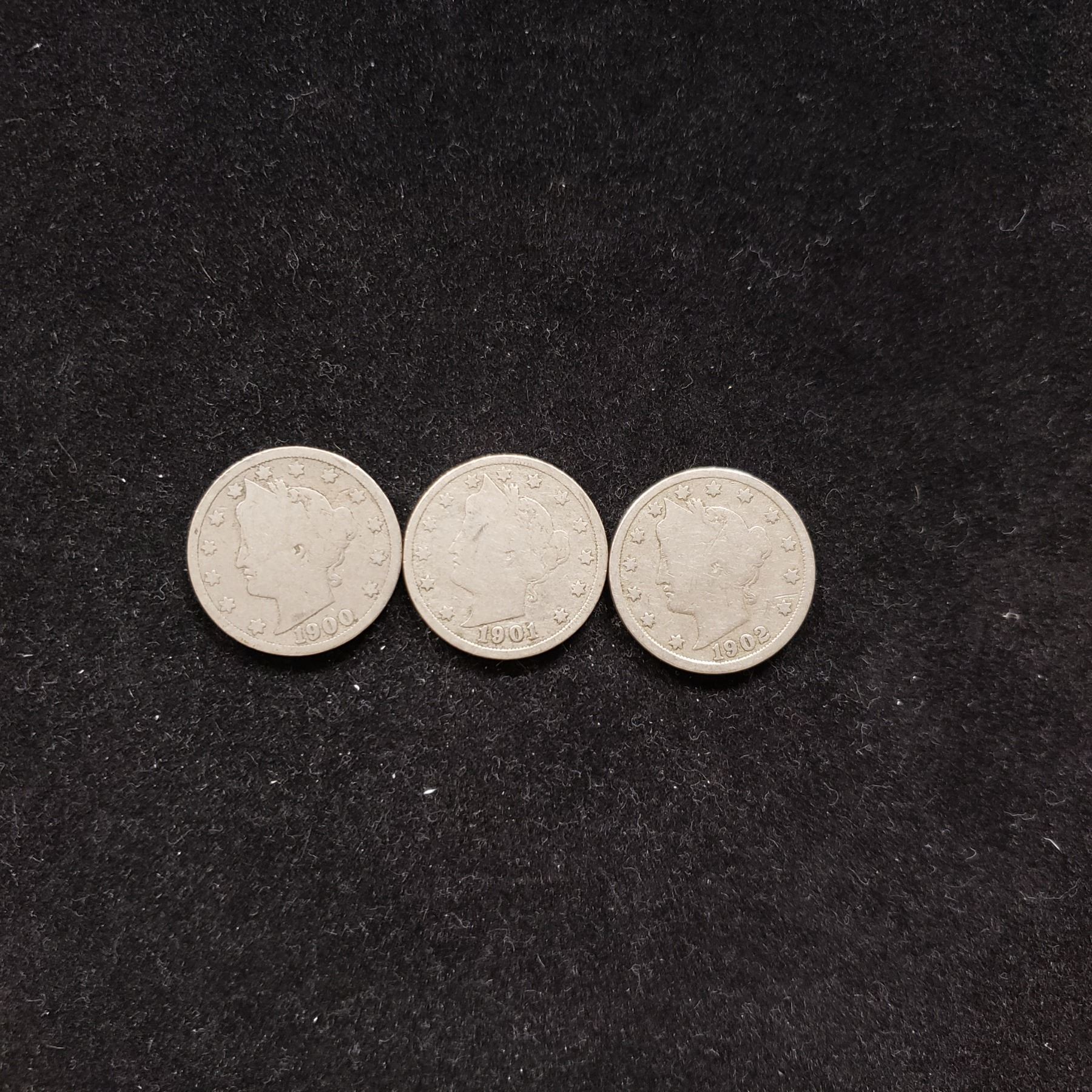 1900,1901,1902 Liberty V Nickels Grade: Mixed