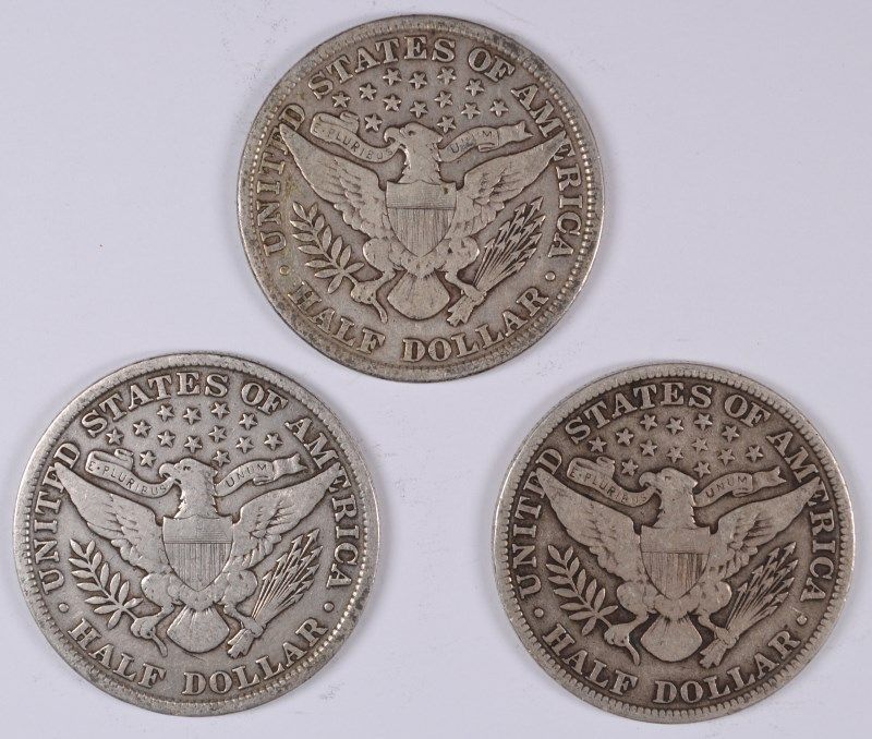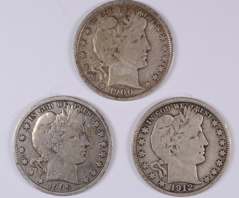 1900, 1906 & 1912 BARBER HALF DOLLARS, ALL F/VF