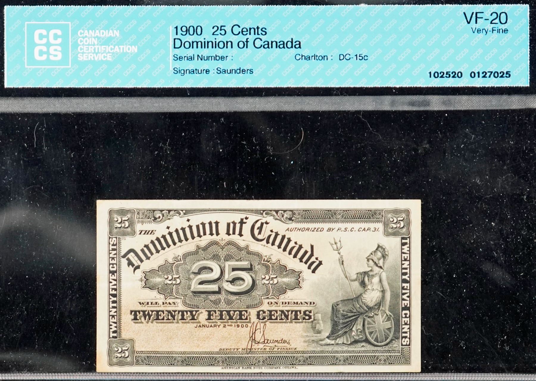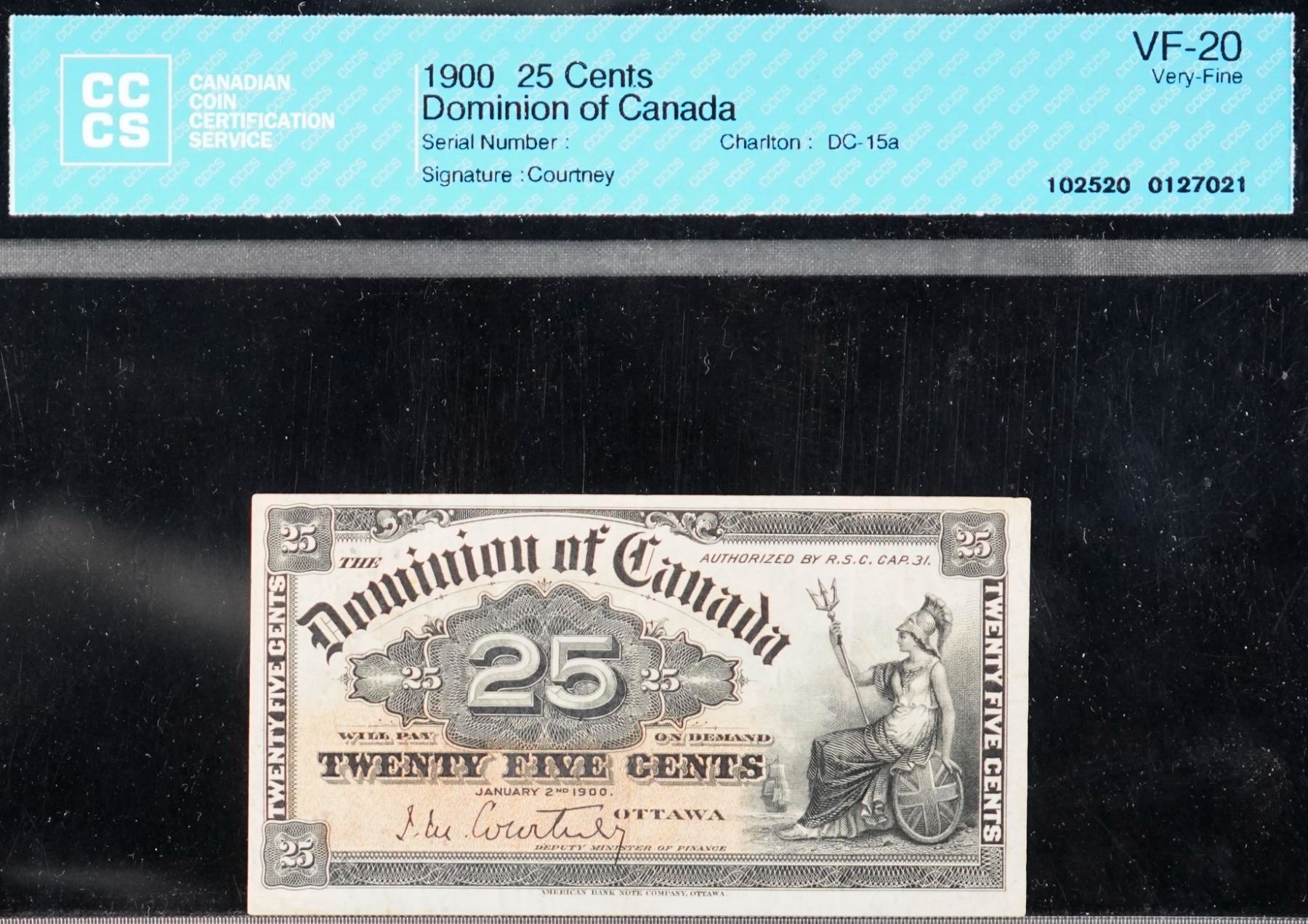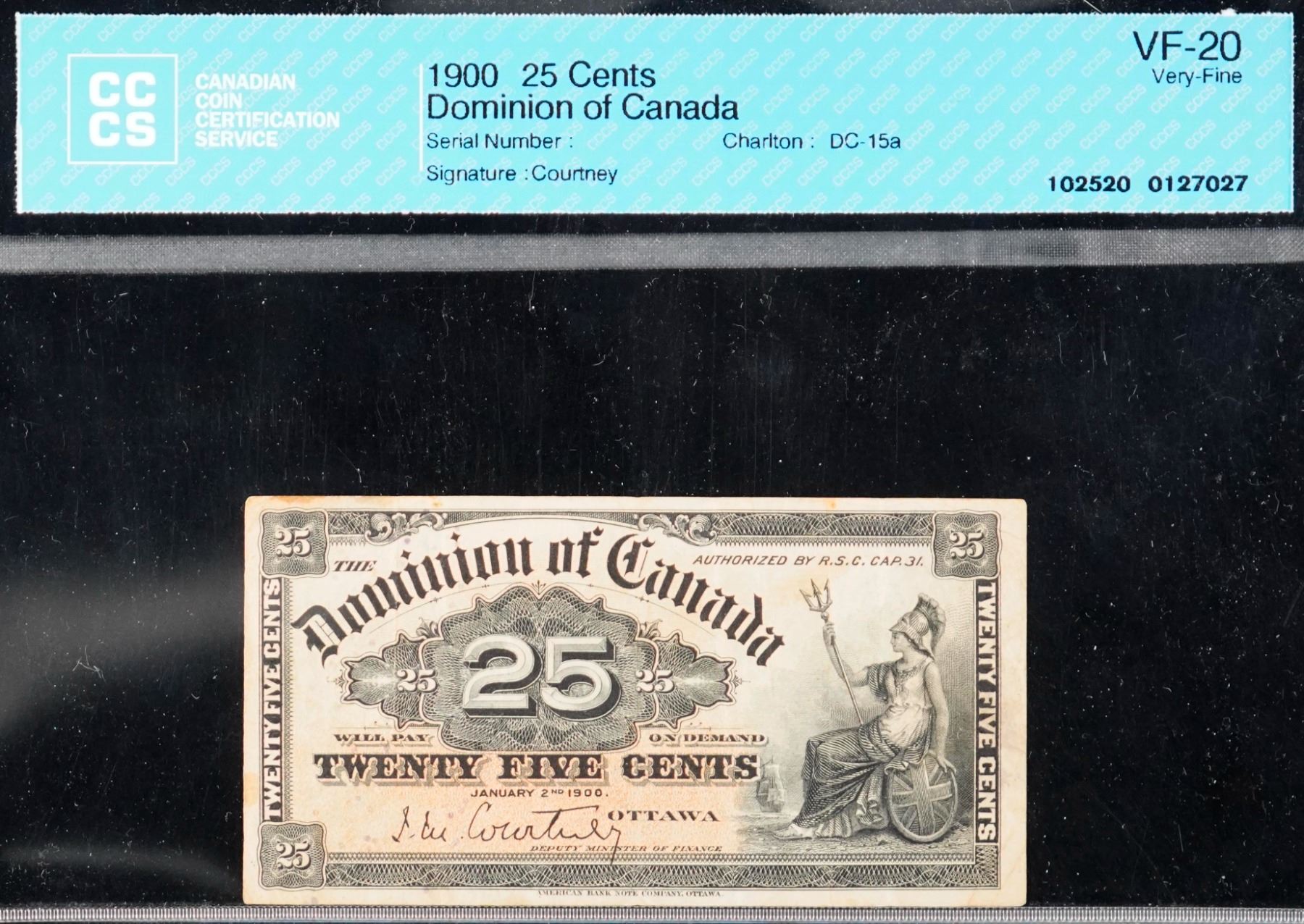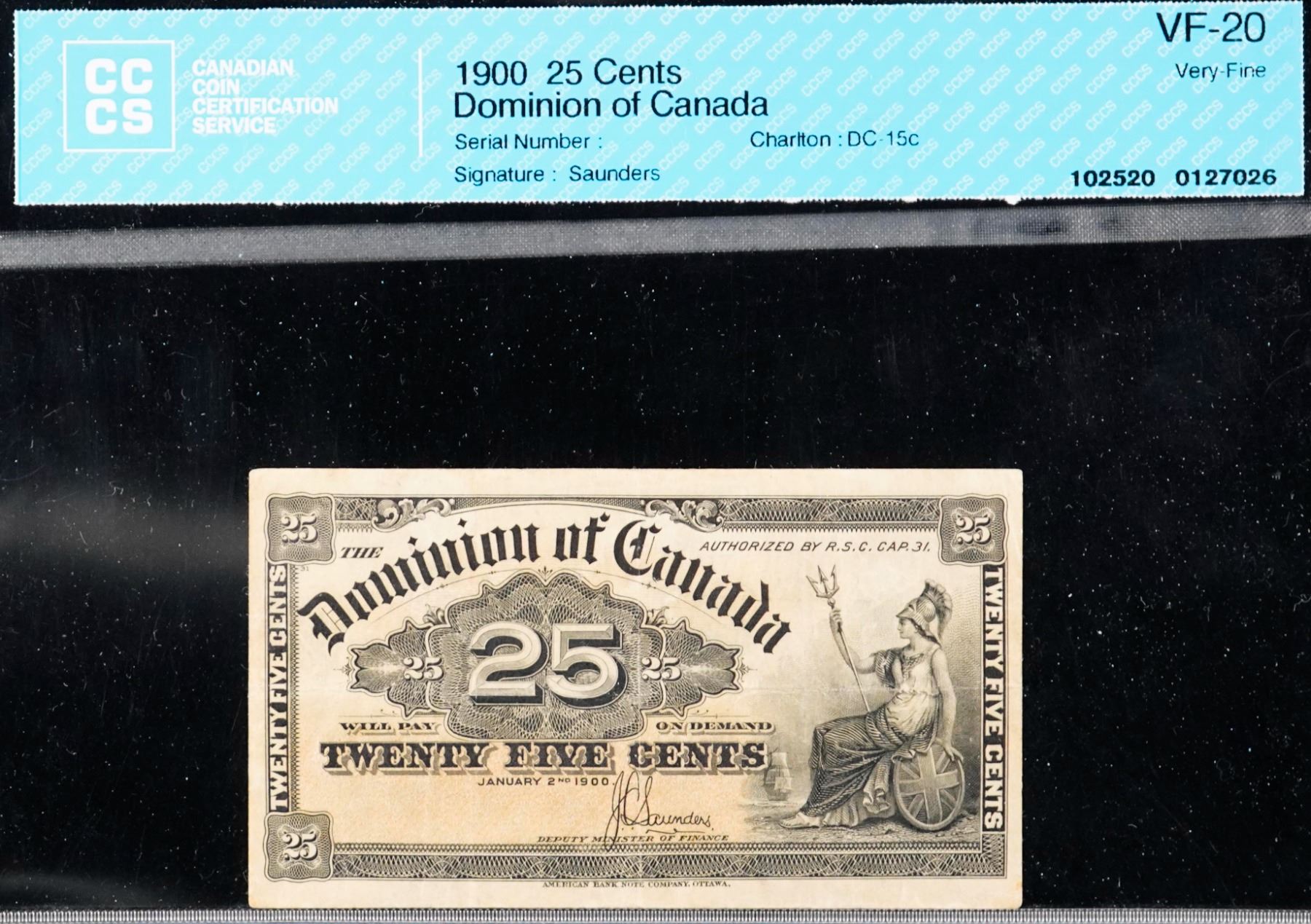 The cataloguer has taken every reasonable measure to ensure that all of the lots in this sale are as described and genuine. All raw coins and banknotes have been graded by the cataloger or the auction house which represent our best professional opinion. To grade coins and banknotes, we use Canadian grading standards, 42 years of experience and good conscience. However, grading is a subjective description in the opinion of the cataloger or the auction house. Among experts there are often differences of opinion on the grading and the eye appeal of a coin. The strike and the state of preservation are often debated. The Canadian Numismatic Company acts as an agent between consignors and buyers. The Canadian Numismatic Company does not guarantee that any coin or banknote cataloged will meet the standards, or the grade, of any third party grading companies. No warranty, whether impressed or implied. Items are as is, no warranty given. We cannot accept responsibility and waive all liability resulting in financial losses, and or incidentals accruing from the sale of any items, nor can we guarantee that items graded by third party services will grade the same if submitted to a different grading service or re-submitted to the same company. Statements by The Canadian Numismatic Company regarding the condition, the eye appeal, the strike and the population of items are for guidance only. All lots offered are sold "AS IS". Title to all lots remains with the auction house until paid for in full by the purchaser. But they are held at the risk of the purchaser once the time of the sale.