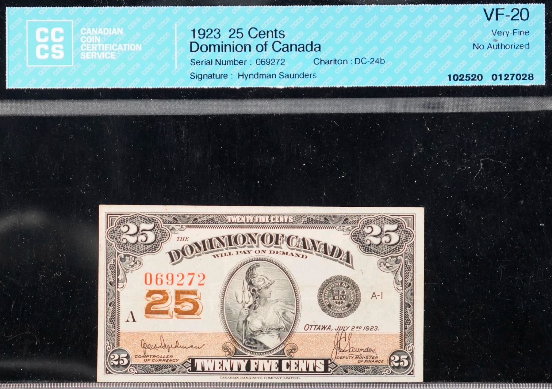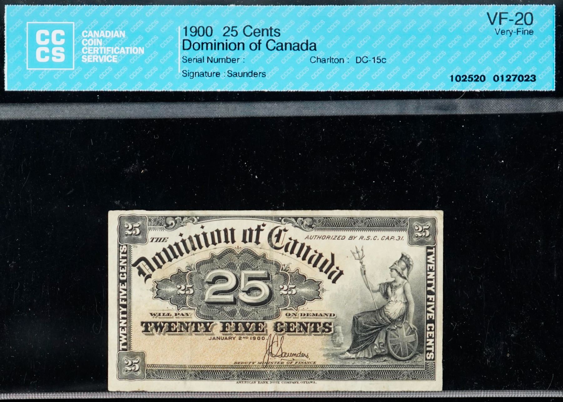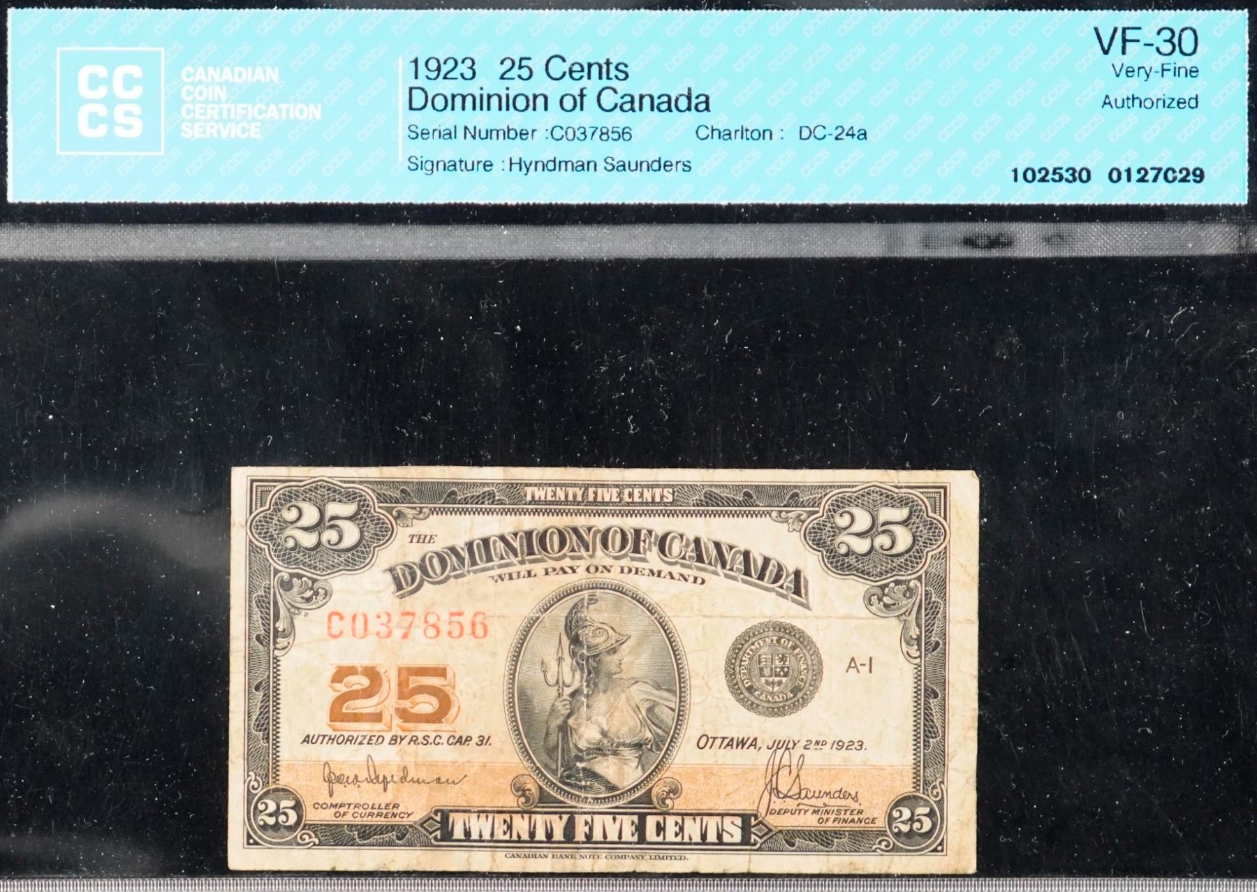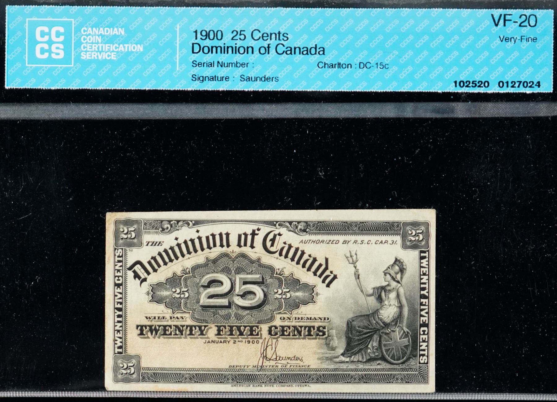 The cataloguer has taken every reasonable measure to ensure that all of the lots in this sale are as described and genuine. All raw coins and banknotes have been graded by the cataloger or the auction house which represent our best professional opinion. To grade coins and banknotes, we use Canadian grading standards, 42 years of experience and good conscience. However, grading is a subjective description in the opinion of the cataloger or the auction house. Among experts there are often differences of opinion on the grading and the eye appeal of a coin. The strike and the state of preservation are often debated. The Canadian Numismatic Company acts as an agent between consignors and buyers. The Canadian Numismatic Company does not guarantee that any coin or banknote cataloged will meet the standards, or the grade, of any third party grading companies. No warranty, whether impressed or implied. Items are as is, no warranty given. We cannot accept responsibility and waive all liability resulting in financial losses, and or incidentals accruing from the sale of any items, nor can we guarantee that items graded by third party services will grade the same if submitted to a different grading service or re-submitted to the same company. Statements by The Canadian Numismatic Company regarding the condition, the eye appeal, the strike and the population of items are for guidance only. All lots offered are sold "AS IS". Title to all lots remains with the auction house until paid for in full by the purchaser. But they are held at the risk of the purchaser once the time of the sale.