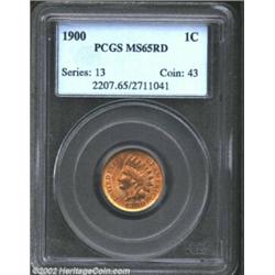 1900 1C MS65 Red PCGS. Thick luster and sandy-red color enhances the mark-free surfaces of this gem.