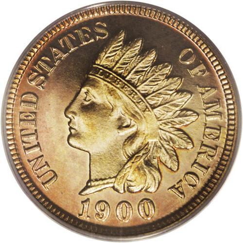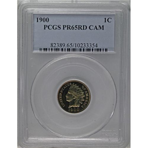 <B>1900<1C> PR65 Red Cameo PCGS.</B></I> While readily available in PR64 and higher grades, very few cameos have been certified by the two major services. PCGS has only certified this piece at the 65 Red level with two finer (7/06). This is a magnificent coin that would make an excellent type coin, if it is not bought by someone assembling a set of high grade cameo cents. The fields are exceptionally deep in their reflectivity, which gives a mirrored background to the frosted devices. The center of the obverse shows a light accent of pale olive-orange color while the rest of coin is deep cherry-red. An exceptionally attractive 1900 cameo cent.<BR><I>From The Tigard Oregon Small Cent Collection.</B></I>