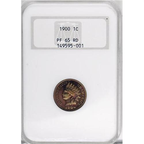 <B>1900 1C PR65 Red NGC.</B></I> An exactingly struck Gem with green-gold surfaces save for a blush of cherry-red on the lower headdress feathers. A few pinpoint flecks are noted. Housed in a prior generation holder. Census: 15 in 65 Red, 14 finer (11/07).<BR><BR><B>Coin Engraver:</B> James B. Longacre<BR><BR><b>Shipping:</b> Coins & Currency (<a target="_blank" href="http://www.heritageauctions.com/common/shipping.php">view shipping information</a>)