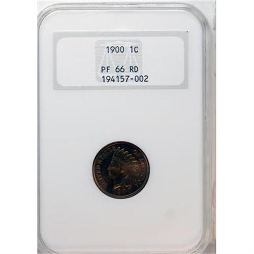 <B>1900 1C PR66 Red NGC.</B></I> Decisively struck with vivid, vibrant reddish-orange surfaces. The overall visual appeal of this turn-of-the-century issue is excellent for this issue of just 2,262 pieces. Census: 9 in 66 Red, 5 finer (12/07).<BR><BR><B>Coin Engraver:</B> James B. Longacre<BR><BR><b>Shipping:</b> Coins & Currency (<a target="_blank" href="http://www.heritageauctions.com/common/shipping.php">view shipping information</a>)