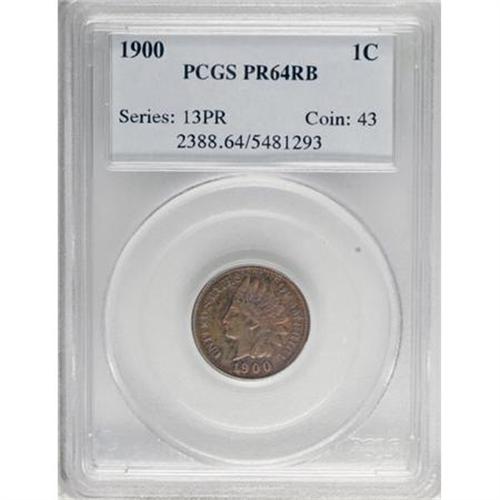 <B>1900 1C PR64 Red and Brown PCGS.</B></I> PCGS Population (98/53). NGC Census: (45/53). Mintage: 2,262. Numismedia Wsl. Price for NGC/PCGS coin in PR64: $224. (#2388)<BR><BR><B>Coin Engraver:</B> James B. Longacre<BR><BR><b>Shipping:</b> Coins & Currency (<a target="_blank" href="http://www.heritageauctions.com/common/shipping.php">view shipping information</a>)
