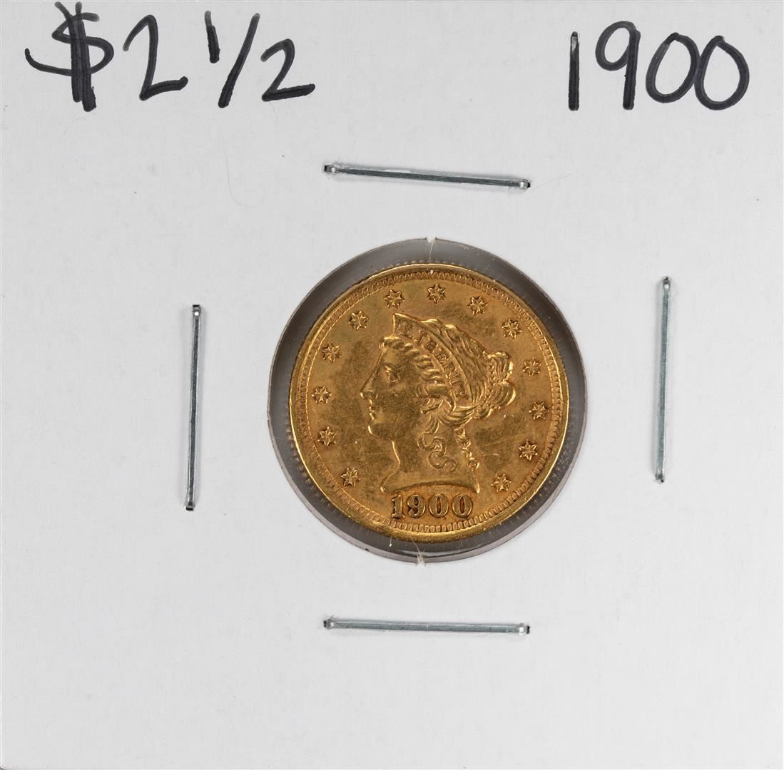 One 1900 $2 1/2 Liberty Head Quarter Eagle Gold Coin.