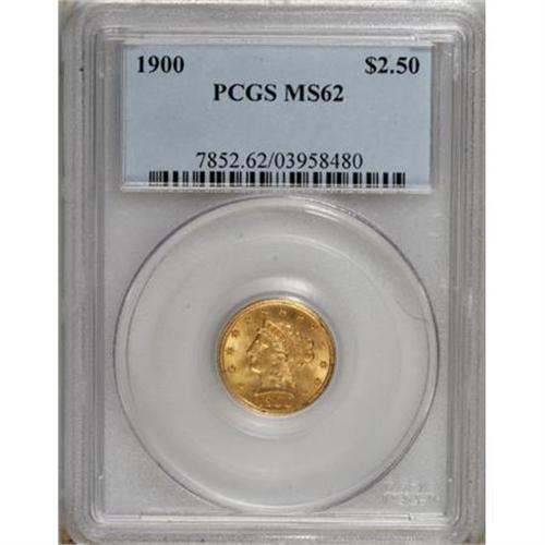 <B>1900 $2 1/2 MS62 PCGS.</B></I> PCGS Population (285/847). NGC Census: (323/901). Mintage: 67,000. Numismedia Wsl. Price for NGC/PCGS coin in MS62: $465. (#7852)<BR><BR><B>Coin Engraver:</B> Christian Gobrecht<BR><BR><b>Shipping:</b> Coins & Currency (<a target="_blank" href="http://www.heritageauctions.com/common/shipping.php">view shipping information</a>)