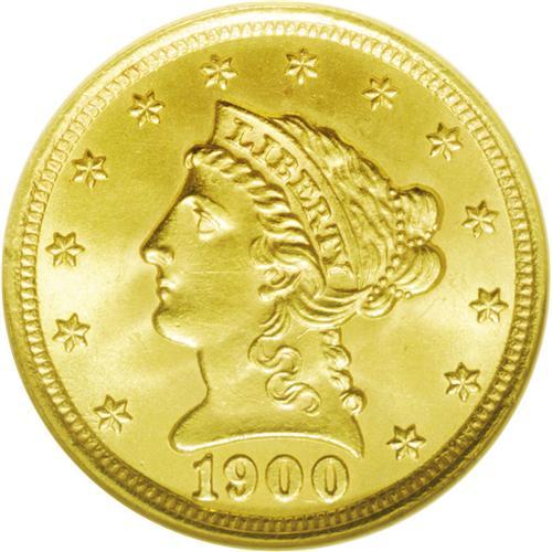 <B>1900<$2 1/2> MS65 NGC.</B></I> This beautiful quarter eagle displays smooth, silky apricot-gold surfaces that are imbued with tinges of light tan. The luster flow is fantastic, and literally jumps out at the viewer, while the design elements are boldly and evenly struck throughout. Were it not for a few unobtrusive marks on the cheek and neck, this lovely piece would undoubtedly grade even higher.