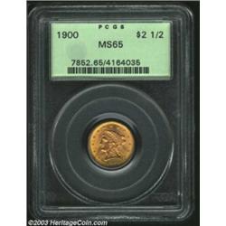 <TABLE cellSpacing=0 cellPadding=0 width="100%" bgColor=#000000 border=0><TBODY><TR><TD width="100%"><TABLE cellSpacing=1 cellPadding=3 width="100%" border=0><TBODY><TR><TD width="100%" bgColor=#79735c><FONT face=arial color=#ffffff size=3><B>Description</B> </FONT></TD></TR><TR><TD width="100%" bgColor=#ffffff><FONT face=arial size=2><B>1900 $2 1/2 MS65 PCGS.</B></I> No doubt a Gem, this piece shows flaws only under magnification and even then, very few grade reducing marks can be seen. A bold strike and effulgent luster are also redeeming characteristics of this stunning quarter eagle. Population: 94 in 65, 47 finer (8/03). </FONT></TD></TR></TBODY></TABLE></TD></TR></TBODY></TABLE><BR><A name=PricesRealized></A><TABLE cellSpacing=0 cellPadding=0 width="100%" bgColor=#000000 border=0><TBODY><TR><TD width="100%"><TABLE cellSpacing=1 cellPadding=3 width="100%" border=0><TBODY><TR><TD width="100%" bgColor=#79735c><A name=PR><FONT face=arial color=#ffffff size=3><B>Previous Prices from Heritage Auctions</B> </FONT></A></TD></TR><TR><TD bgColor=#f6f6ed><TABLE cellSpacing=0 cellPadding=0 width="100%" border=1><TBODY><TR><TD align=middle width="33%"><B>Date</B></TD><TD align=middle width="33%"><B>Service</B></TD><TD align=middle width="33%"><B>Price</B></TD></TR><TR bgColor=whitesmoke><TD width="33%"><B>10/01/1993</B></TD><TD width="33%">PCGS</TD><TD width="33%">$2,365.00</TD></TR><TR bgColor=whitesmoke><TD width="33%"><B>02/01/1999</B></TD><TD width="33%">PCGS</TD><TD width="33%">$1,540.00</TD></TR><TR bgColor=whitesmoke><TD width="33%"><B>02/26/2002</B></TD><TD width="33%">NGC</TD><TD width="33%">$1,322.50</TD></TR><TR bgColor=whitesmoke><TD width="33%"><B>03/13/1999</B></TD><TD width="33%">NGC</TD><TD width="33%">$1,840.00</TD></TR><TR bgColor=whitesmoke><TD width="33%"><B>05/01/1990</B></TD><TD width="33%">NGC</TD><TD width="33%">$5,060.00</TD></TR><TR bgColor=whitesmoke><TD width="33%"><B>06/04/1999</B></TD><TD width="33%">NGC</TD><TD width="33%">$1,725.00</TD></TR></TBODY></TABLE></TD></TR><TR><TD bgColor=#ffffff><FONT face=arial size=1 ?>PLEASE NOTE: All prices realized reflect the final hammer price PLUS the buyer's premium in auctions that charge a buyer's premium. Each item has a notation at the top of the listing indicating whether that lot included a buyer's premium. Example: A item that sells with a final hammer price of $100 and a 20% buyer's premium will display with a price realized of $120. All information listed is intended to be as accurate as possible, but errors are possible. Please use this guide carefully and inform us of any inaccuracies. </FONT></TD></TR></TBODY></TABLE></TD></TR></TBODY></TABLE><BR><TABLE cellSpacing=0 cellPadding=0 width="100%" bgColor=#000000 border=0><TBODY><TR><TD width="100%"><TABLE cellSpacing=1 cellPadding=3 width="100%" border=0><TBODY><TR><TD width="100%" bgColor=#79735c colSpan=6><FONT face=arial color=#ffffff size=3><B>Price Guide*</B> </FONT></TD></TR><TR bgColor=#f6f6ed><TD align=middle><B>Grade</B> </TD><TD align=middle><B>Coin World<BR>(Trends)</B> </TD><TD align=middle><B>Numismedia<BR>Retail</B> </TD><TD align=middle><B>Numismedia<BR>Wholesale</B> </TD><TD align=middle><B>Coin<BR>Universe</B> </TD><TD align=middle><B>Heritage<BR>Value Index</B> </TD></TR><TR bgColor=#ffffff><TD align=middle>64</TD><TD align=right>$850.00</TD><TD align=right>$920.00</TD><TD align=right>$735.00</TD><TD align=right>$950.00</TD><TD align=right>$651.38</TD></TR><TR style="FONT-WEIGHT: bold" bgColor=#cccfdd><TD align=middle>65</TD><TD align=right>---</TD><TD align=right>---</TD><TD align=right>$1,200.00</TD><TD align=right>$1,850.00</TD><TD align=right>$1,412.67</TD></TR><TR bgColor=#ffffff><TD align=middle>66</TD><TD align=right>---</TD><TD align=right>---</TD><TD align=right>$2,025.00</TD><TD align=right>$2,200.00</TD><TD align=right>$1,784.33</TD></TR><TR bgColor=#ffffff><TD colSpan=6><FONT size=1>*All information listed is intended to be as accurate as possible, but errors are possible. No item may be returned or refused based on this information which is provided as a service to our customers. You should contact each pricing source directly to determine the accuracy of this information. </FONT></TD></TR></TBODY></TABLE></TD></TR></TBODY></TABLE><BR><TABLE cellSpacing=0 cellPadding=0 width="100%" bgColor=#000000 border=0><TBODY><TR><TD width="100%"><TABLE cellSpacing=1 cellPadding=3 width="100%" border=0><TBODY><TR><TD width="100%" bgColor=#79735c><FONT face=arial color=#ffffff size=3><B>Population Guide</B> </FONT></TD></TR><TR bgColor=#ffffff><TD align=middle><!-- Begin Output of Population Grid--><TABLE cellSpacing=0 cellPadding=0 width="100%" border=0><TBODY><TR><TD vAlign=center><TABLE cellSpacing=0 width="100%" border=1 cellsadding="3"><TBODY><TR><TD vAlign=center><TABLE cellSpacing=0 cellPadding=3 width="100%" border=1><TBODY><TR><TD vAlign=center align=middle bgColor=#f0f1e8 colSpan=2 <CENTER><FONT face=Arial size=2><B>PCGS Pop </B></FONT><CENTER></CENTER></TD><TD vAlign=center align=middle bgColor=#f0f1e8 colSpan=2><CENTER><FONT face=Arial size=2><B>NGC Pop</B></CENTER></FONT></TD></TR><TR><TD vAlign=center><FONT face=Arial size=2>(65)</FONT> </TD><TD vAlign=center align=right><FONT face=Arial size=2>94</FONT> </TD><TD vAlign=center><FONT face=Arial size=2>(65)</FONT> </TD><TD vAlign=center align=right><FONT face=Arial size=2>100</FONT> </TD></TR><TR><TD vAlign=center><FONT face=Arial size=2>(>65)</FONT> </TD><TD vAlign=center align=right><FONT face=Arial size=2>47</FONT> </TD><TD vAlign=center><FONT face=Arial size=2>(>65)</FONT> </TD><TD vAlign=center align=right><FONT face=Arial size=2>72</FONT> </TD></TR></TBODY></TABLE></TD></TR></TBODY></TABLE></TD></TR></TBODY></TABLE><!-- End Output of Population Grid--> Important notice: Heritage usually auctions material at the rate of 200-250 lots per hour. On some occasions eBay Live bid software or the Internet may not be able to keep up with the pace of the auction. We recommend placing a realist