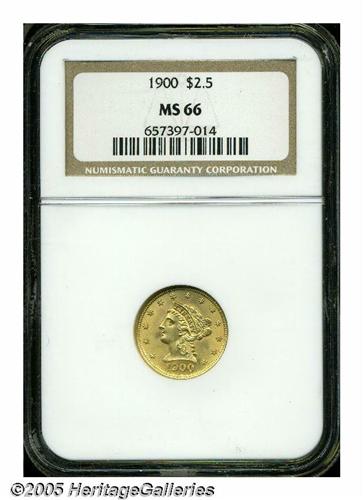 1900 $2 1/2 MS66 NGC. With a mintage of 67,000 bu