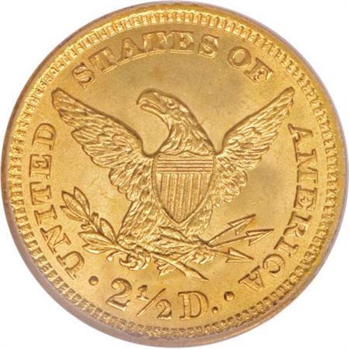 <B>1900 $2 1/2 MS67 PCGS.</B></I> This outstanding turn-of-the-century gold type coin has booming luster, and the strike is needle-sharp across the legends and devices. Only the denticles lack absolute detail. As expected of a Superb Gem, the preservation is exemplary. Population: 5 in 67, 0 finer (8/07).<BR><BR><B>Coin Engraver:</B> Christian Gobrecht<BR><BR><b>Shipping:</b> Coins & Currency (<a target="_blank" href="http://www.heritageauctions.com/common/shipping.php">view shipping information</a>)