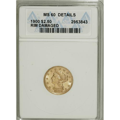 1900 $2 1/2 --Rim Damaged--ANACS. MS60 Details. NGC