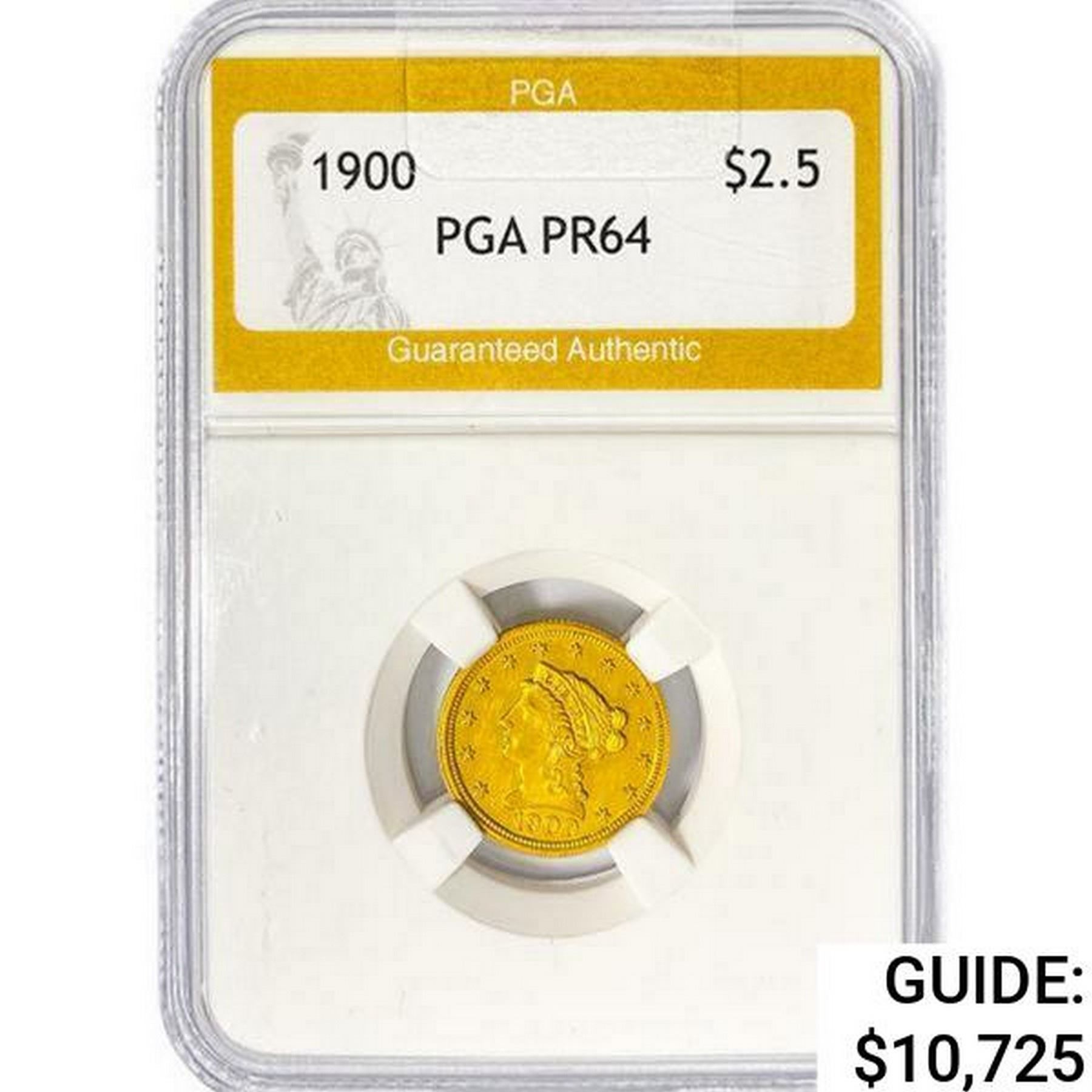 1900 $2.50 Gold Quarter Eagle PGA PR64