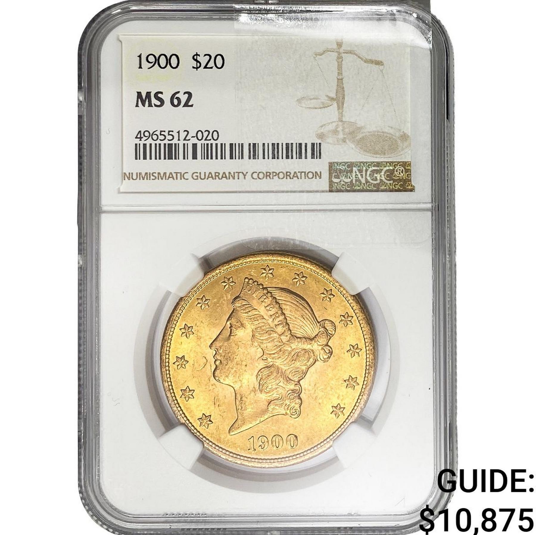 1900 $20 Gold Double Eagle NGC MS62