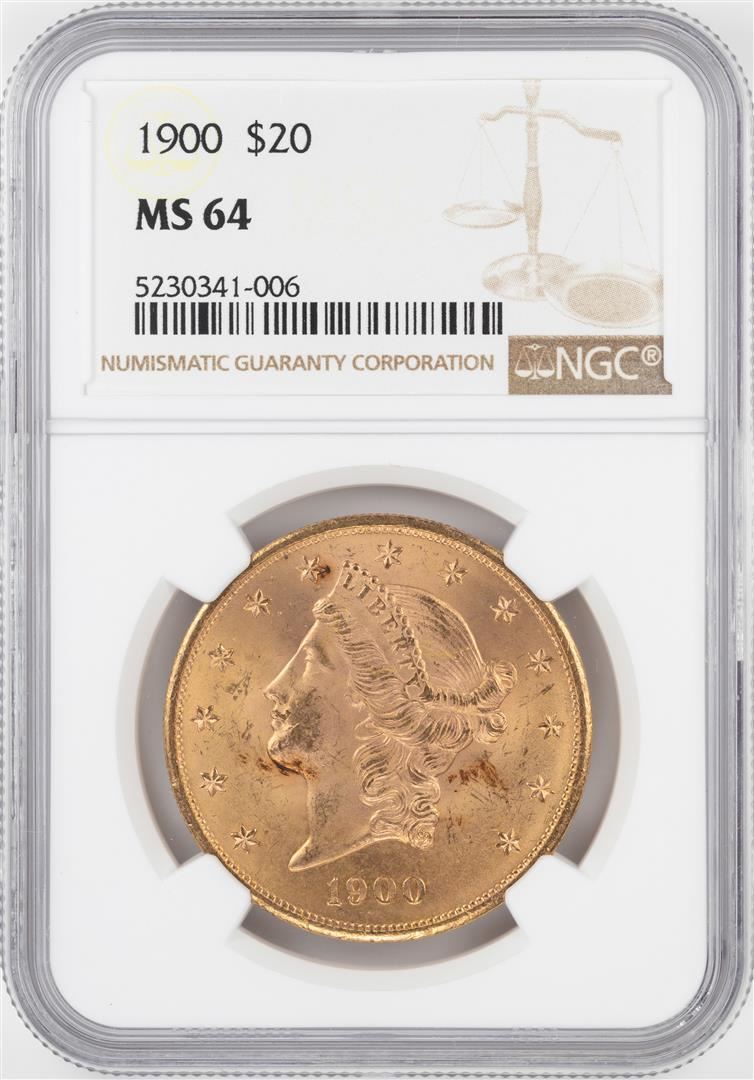 One 1900 $20 Liberty Head Double Eagle Gold Coin NGC MS64. NGC Certified.
