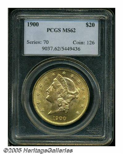 <B>1900<$20> MS62 PCGS.</B></I> Sharply struck and fully lustrous with excellent eye appeal. While lightly marked, the surfaces are quite pleasing for the assigned grade.