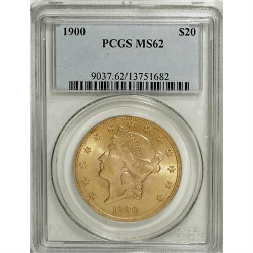 <B>1900 $20 MS62 PCGS.</B></I> PCGS Population (9162/9429). NGC Census: (11257/12307). Mintage: 1,874,584. Numismedia Wsl. Price for NGC/PCGS coin in MS62: $740. (#9037)<BR><BR><B>Coin Engraver:</B> James B. Longacre<BR><BR><b>Shipping:</b> Coins & Currency (<a target="_blank" href="http://www.heritageauctions.com/common/shipping.php">view shipping information</a>)