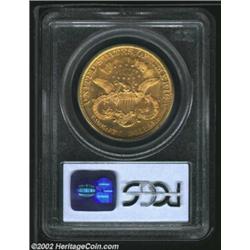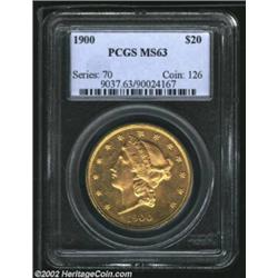 1900 $20 MS63 PCGS. The fields are rather prooflike, and have flashy eye appeal. Well preserved asid