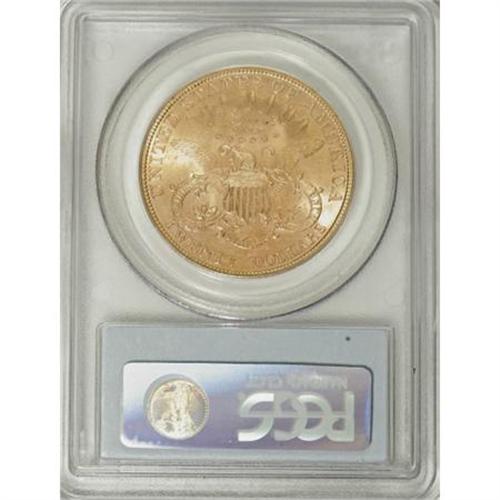 <B>1900 $20 MS63 PCGS.</B></I> PCGS Population (6919/2744). NGC Census: (9275/3096). Mintage: 1,874,584. Numismedia Wsl. Price for NGC/PCGS coin in MS63: $920. (#9037)<BR><BR><B>Coin Engraver:</B> James B. Longacre<BR><BR><b>Shipping:</b> Coins & Currency (<a target="_blank" href="http://www.heritageauctions.com/common/shipping.php">view shipping information</a>)