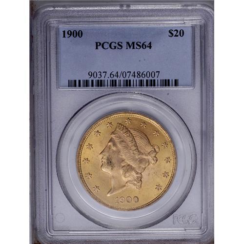<B>1900<$20> MS64 PCGS.</B></I> A highly lustrous yellow-orange double eagle. The exquisitely detailed devices have some small marks that keep this piece from Gem status.