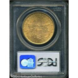 1900 $20 MS64 PCGS. A lustrous and exquisitely str <B>1900 $20 MS64 PCGS.</B></I> A lustrous and exquisitely struck near-Gem. The obverse field is beautifully undisturbed, while the portrait has only moderate grazes on the cheek and eyebrow. <BR><BR><B>Important notice:</B> Heritage usually auctions material at the rate of 200-250 lots per hour. On some occasions eBay Live bid software or the Internet may not be able to keep up with the pace of the auction. We recommend placing a realistic absentee bid now as insurance to avoid disappointment. Occasionally the auctioneer may eliminate or reject an eBay Live bid, and the auctioneer may also reopen a lot after the close of the eBay live bidding (usually because we missed an audience bid), and may reject your bid even if it shows you as the winning bidder. By bidding via eBay Live, you agree that Heritage may award the lot to another bidder at its sole discretion under the circumstances described above or any other reasonable circumstances. Since eBay bids are not shown to us until we open the lot on the floor, we treat those bids just like floor bids. In most cases the floor responds before the eBay bid is presented to us, due to Internet lag time, so for consistency we have made it a policy that floor bids are always considered first over tie eBay live bids. Also please note that all Heritage lots purchased through eBay Live carry a 20% Buyer's Premium. Please make sure you read the Terms and Conditions before you bid. This lot is being auctioned in conjunction with a live floor auction by Heritage Galleries & Auctioneers. All final auction and invoice information will be supplied by Heritage Galleries & Auctioneers, and all other information should be considered preliminary. Lot:7003