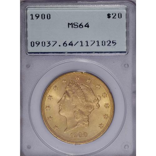 <B>1900 $20 MS64 PCGS.</B></I> A splendid khaki-gold Double Eagle, boldly impressed by the dies and housed in a first generation holder. Lustrous, undisturbed, and high end for the grade.