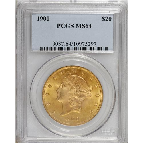 <B>1900 $20 MS64 PCGS.</B></I> An attractive near-Gem that hails from the final year of the 19th century. The orange-gold surfaces have soft, pleasing luster, and the strike is solid. Highly desirable.<BR><BR><b>Shipping:</b> Coins & Currency (<a target="_blank" href="http://www.heritageauctions.com/common/shipping.php">view shipping information</a>)