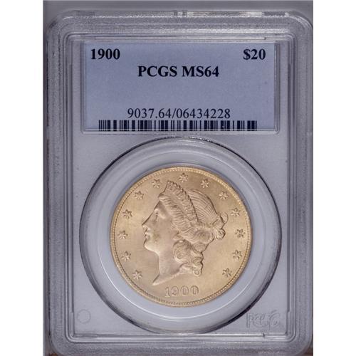 1900 $20 MS64 PCGS. Booming luster, a quality strike,