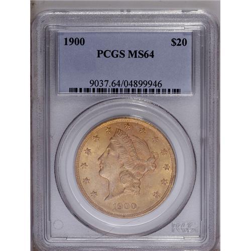 1900 $20 MS64 PCGS. Creamy, flowing luster and excepti
