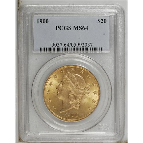 <B>1900 $20 MS64 PCGS.</B></I> Remarkably well struck with seemingly complete definition of even the most minuscule design elements. Rich luster and lovely orange-rose coloration increase the eye appeal of the piece. Surface marks are minimal for a near-Gem.<BR><BR><b>Shipping:</b> Coin/Currency (<a target="_blank" href="http://www.heritageauctions.com/common/shipping.php">view shipping information</a>)