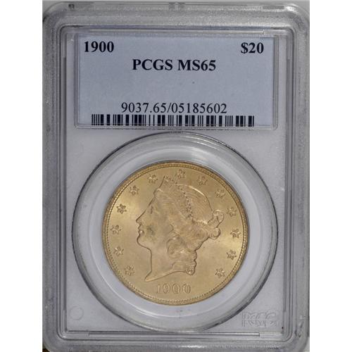 <B>1900 $20 MS65 PCGS.</B></I> This popular turn-of-the-century issue had an original mintage figure in excess of 1.8 million pieces. Other issues with even higher mintages have proven scarce in later years, but the 1900 is one of the most easily obtained of all Liberty Head double eagles, up to and including the MS64 grade level. Gems are scarce, however, and only a handful of Premium Gems have been certified. This lovely Gem is well struck and highly lustrous, with minimally disturbed surfaces and appealing yellow-gold and rose toning. Population: 50 in 65, 2 finer (10/06).<BR><BR><b>Shipping:</b> Coin/Currency (<a target="_blank" href="http://www.heritageauctions.com/common/shipping.php">view shipping information</a>)