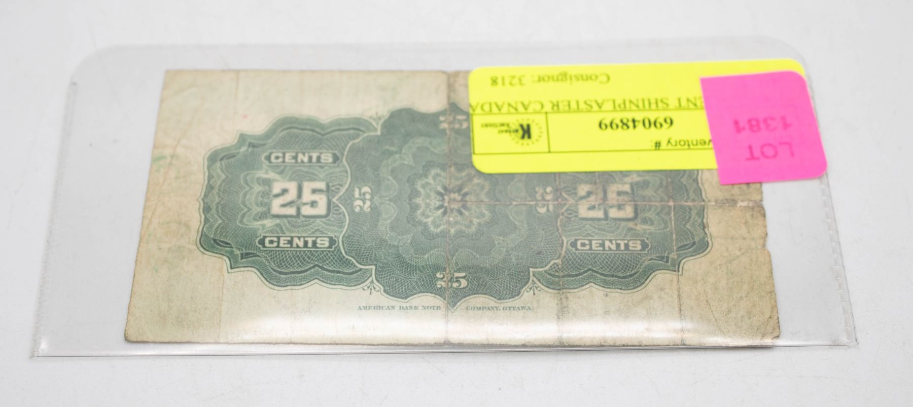 1900 25-CENT SHINPLASTER CANADA NOTE