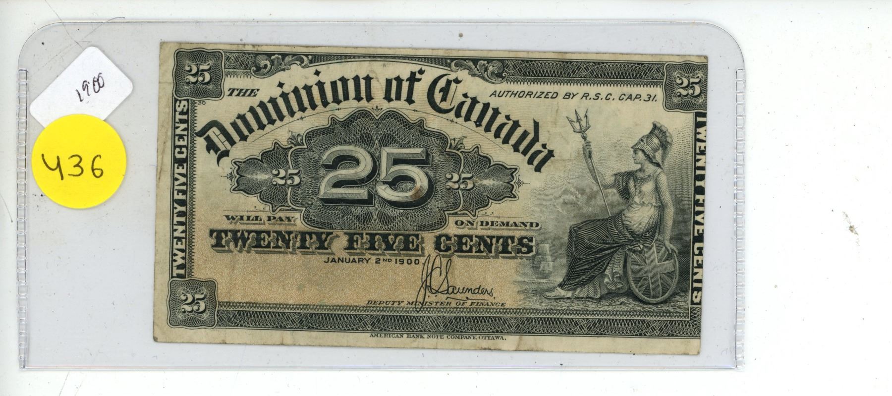 1900 25 Cents Canadian Shinplaster.